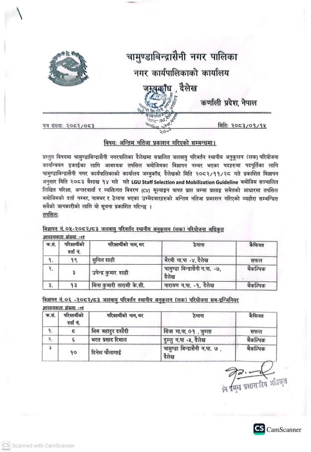 अन्तिम नतिजा प्रकाशन गरिएको सम्बन्धि सूचना ।।।