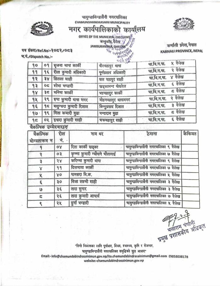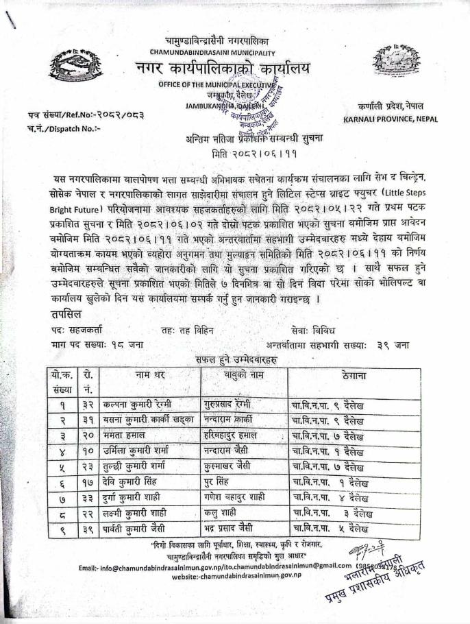 छोटो सुचीमा छ्नौट भएका उमेदवारहरुको लिखित तथा अन्तरबार्ता सम्बन्धी सूचना ।।।
