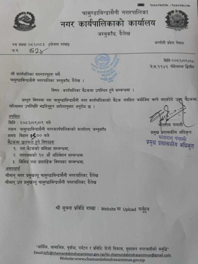» बैठकमा उपस्थिति हुने सम्बन्धमा।।