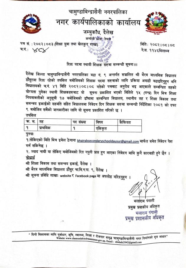 » रिक्त पदमा स्थायी शिक्षक सरुवा सम्बन्धी सूचना ।।।