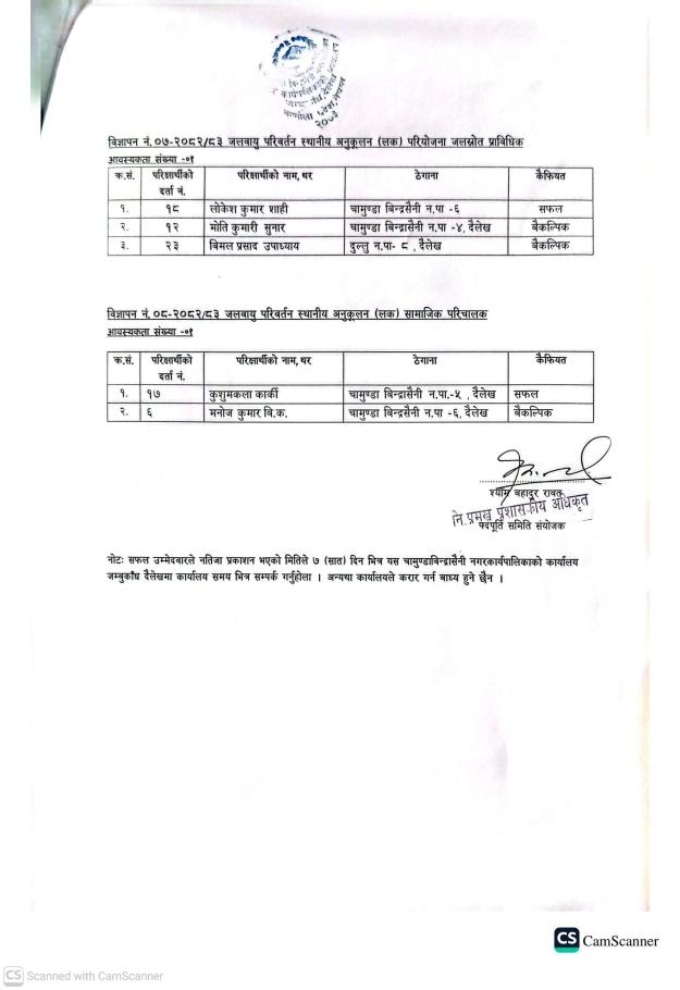 प्रारम्भिक योग्यताक्रमकाे नामावली प्रकाशन गरिएको सम्बन्धमा।।।