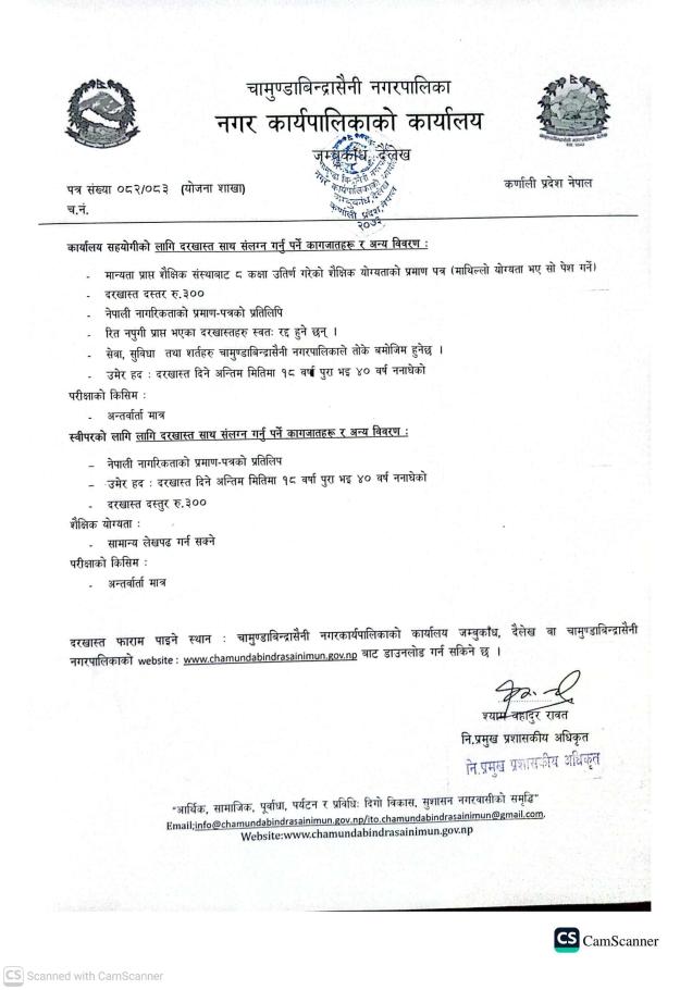 » चामुण्डाबिन्द्रासैनी आधारभुत अस्पतालका लागि करार सेवामा कर्मचारी आबश्यकता सम्वन्धी सूचना ।।।।
