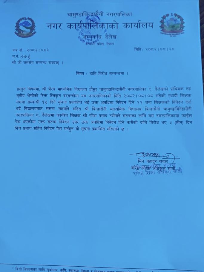 दाबी बिरोध सम्बन्धमा।।।