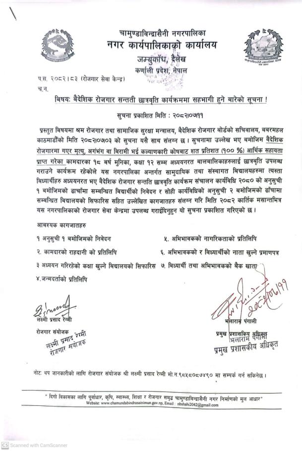 वैदेशिक रोजगार सन्तति छात्रवृत्ति कार्यक्रममा सहभागी हुने सम्बन्धि सूचना ।।