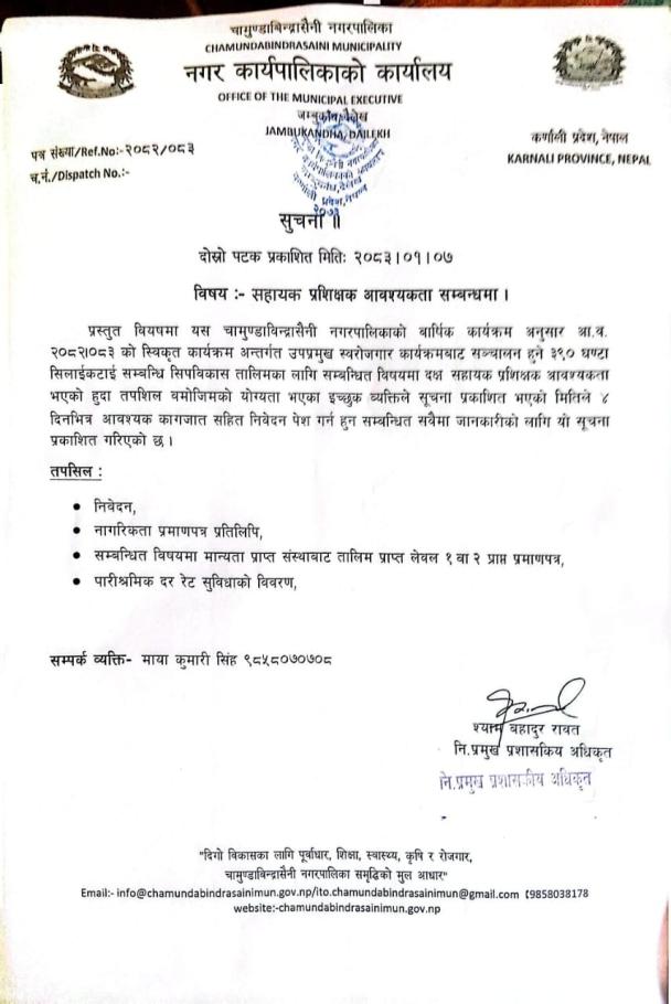 चामुण्डाबिन्द्रासैनी आधारभुत अस्पतालका लागि करार सेवामा कर्मचारी आबश्यकता सम्वन्धी सूचना ।।।।